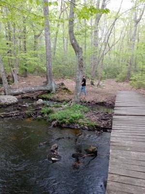 The mature hardwood forest has the common upland trees of southern New England: oaks, birch, sassafras, beech, black cherry, and hickory. Red maple, yellow birch and tupelo populate wetter areas. You will also see the only New England broadleaf evergreen tree, the American holly. The brook winds through swamp, aggregations of boulder and exposed bedrock, and vernal pools. A diverse assemblage of woodland plants and shrubs may be seen along the trails.